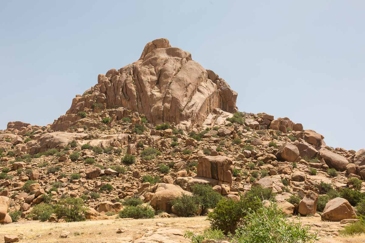 Es herrscht eine friedliche Stimmung – außer uns ist keiner dort. Die Vegetation in Form von ein paar Gräsern und Arganienbäumen ist spärlich. Eigentlich sieht es aus wie in den weiten Steppen der mittelafrikanischen Nationalparks. Man überlegt, ob nicht jeden Moment ein Löwe, Giraffe oder Elefant um den nächsten Felsen kommen könnte. Wir sind zwar in Afrika – aber so was gibt es hier nicht. Und so beschließen wir, dort zu nächtigen.